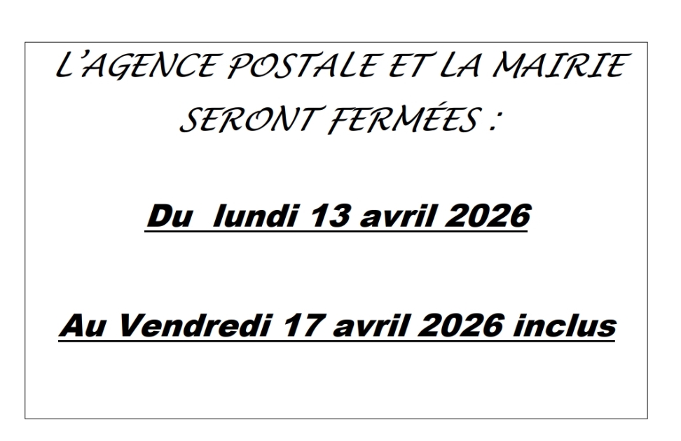 FERMETURE MAIRIE ET AGENCE POSTALE